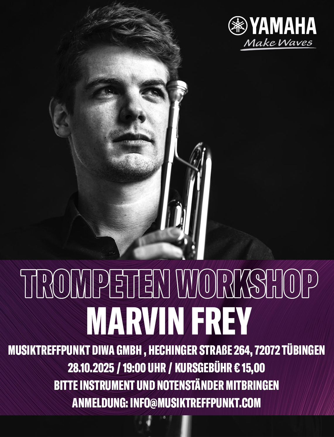 Am 28. Oktober 2025 haben alle Trompeter die einmalige Gelegenheit, an einem inspirierenden Workshop mit Marvin Frey teilzunehmen.