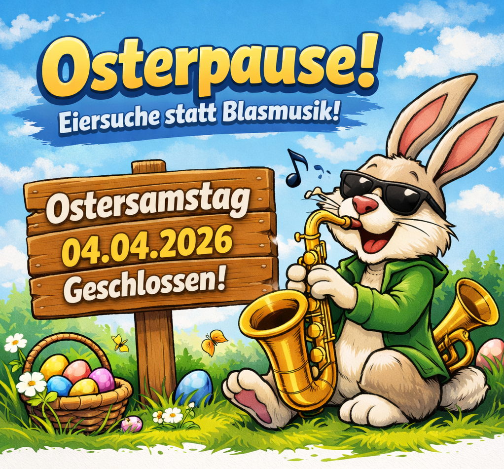 Ab Dienstag, den 22. April, sind wir wieder wie gewohnt für euch da – mit guter Laune, fachkundiger Beratung und allem rund um die Welt der Blasinstrumente.